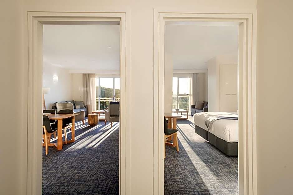 This interconnecting river view suite and river view room offers two bedrooms, two bathrooms, spacious lounge and dining area, full European kitchen and laundry.